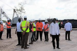 President Dr. Irfaan Ali (center) engages CGX Chairman Dr. Suresh Narine, Senior Minister within the Office of the President with responsibility for Finance Dr. Ashni Singh, and other stakeholders during a site visit of the Berbice Deepwater Port (Photo: News Room/ December 17, 2021)[/caption]Already, though, works are ongoing at a multi-million deep water port aback Seawell village in Berbice. This facility, being built by Canadian oil company CGX Energy, could become a major hub for oil and gas business because of oil finds at nearby wells in Guyana and Suriname.The CGX port is expected to accommodate two platform supply vessels. It was also reported that there are plans to build a compacted port site with warehousing and tubular storage.President Ali said that the newer deep water port is expected to create “thousands of jobs” for people in the region. It is also expected to have numerous “spin-off” benefits.And to prepare residents for the technical skills needed at these ports and in the wider oil and gas facility, the President highlighted that the Guyana National Training Centre will also be established in the region at Port Mourant.He said that more than $160 million will be spent in “phase one alone” of the training centre. The promised hospitality institute, geared at training people to improve Guyana’s tourism services, will also be at this facility.